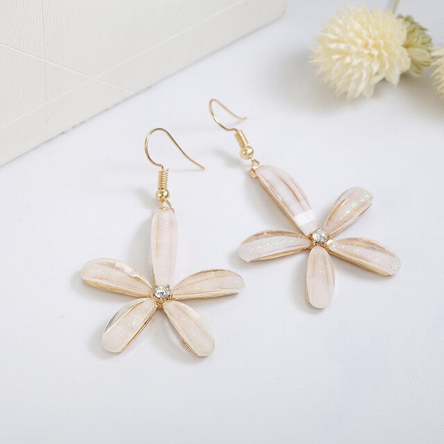 Earring Type: Drop EarringsFine or Fashion: FashionItem Type: EarringsStyle: TrendyMaterial: AcrylicShape\pattern: PlantBrand Name: TMXK angelMetals Type: Zinc AlloyModel Number: ez66Gender: Womenis_customized: Yes